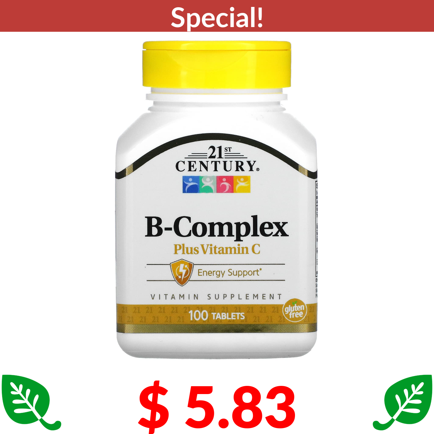 $ 5.83 21st Century, B-Complex Plus Vitamin C, 100 Tablets