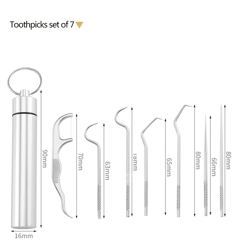 7pcs/set Portable Toothpick Floss Teeth Cleaner Oral Cleaning Toothpick Set Reusable Tooth Flossing Stainless Steel Toothpicks - Купить с бесплатной доставкой