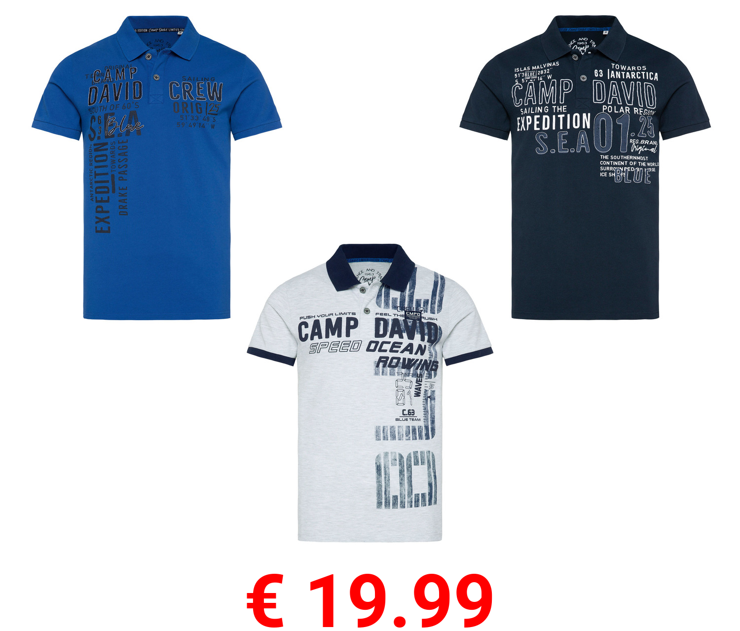 € 19.99 Camp David Herren Poloshirt mit Druck