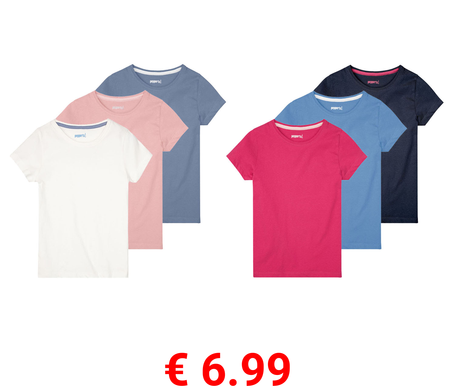 € 6.99 pepperts!® Mädchen T-Shirts, 3 Stück, mit Rundhalsausschnitt