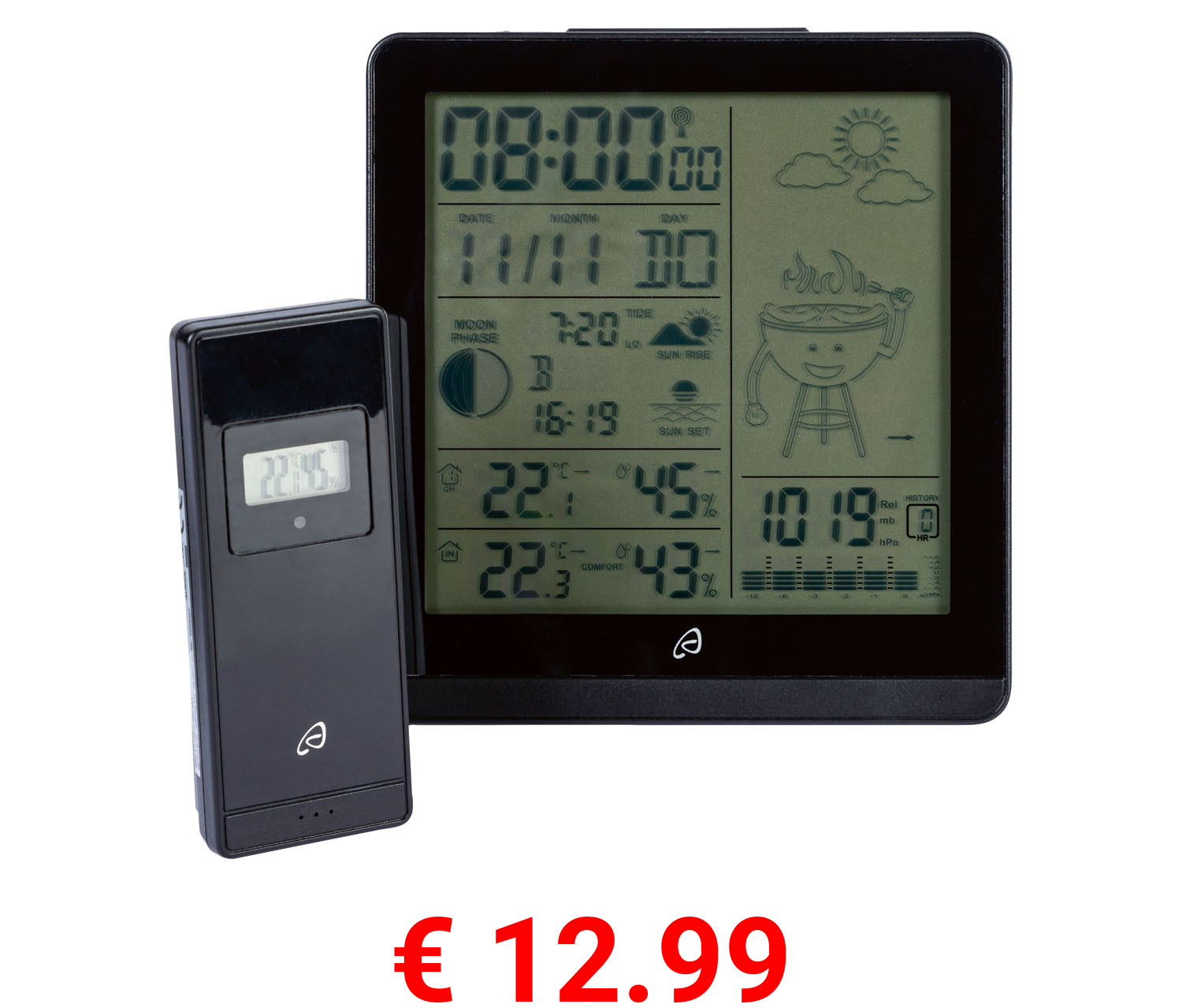 € 12.99 AURIOL® Funk-Wetterstation, mit Außensensor und Grillwetter-Anzeige