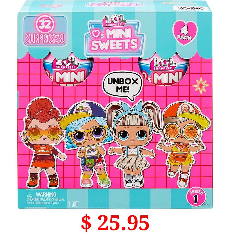 $ 25.95 L.O.L. Surprise! Loves Mini Sweets Dolls 4-Pack #1 Jolly Rancher, Hot Tamales, Hershey’s Chocolate, Chupa Chups, w/ 32 Surprises, Candy Theme, Accessories, Collectible Doll, Paper Packaging