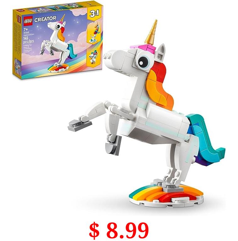 $ 8.99 LEGO Creator 3 in 1 Magical Unicorn Toy, Transforms from Unicorn to Seahorse to Peacock, Rainbow Animal Figures, Unicorn Gift for Grandchildren, Girls and Boys, Buildable Toys, 31140