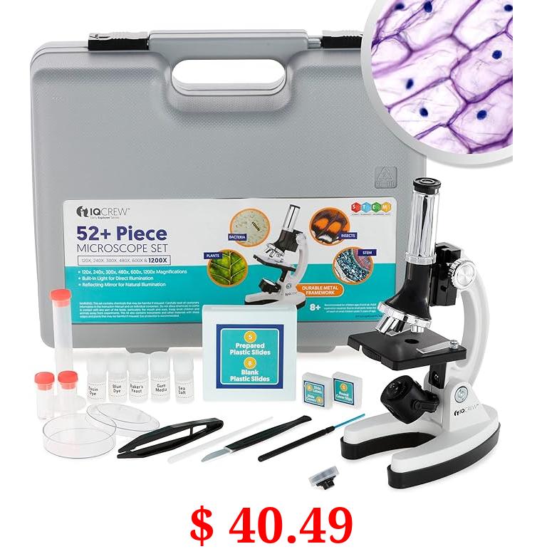 $ 40.49 AmScope 120X-1200X 52-pcs Kids Beginner Microscope STEM Kit with Metal Body Microscope, Plastic Slides, LED Light and Carrying Box (M30-ABS-KT2-W),White
