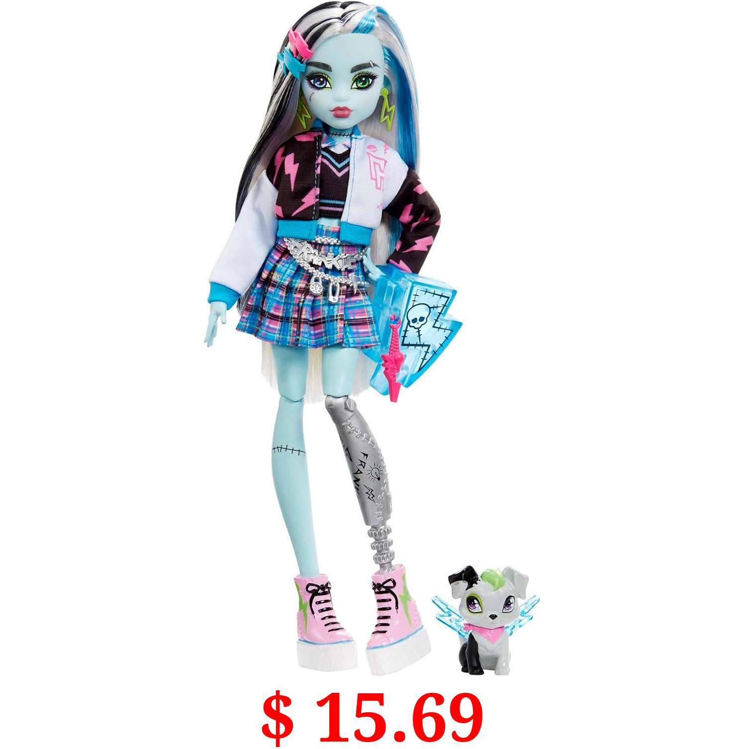 $ 15.69 Monster High Frankie Stein Fashion Doll with Blue & Black Streaked Hair, Signature Look, Accessories & Pet