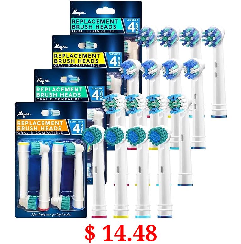 $ 14.48 Alayna Replacement Toothbrush Heads for Oral B Braun Electric Toothbrushes - 16 Assorted Brush Head Refills Compatible w/OralB (4) Cross Clean, Floss, Precision, Sensitive (Fits Most Oral-B Bases)