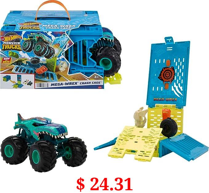 $ 24.31 Hot Wheels Monster Trucks 1:24 Scale MEGA-Wrex Crash Cage, Oversized Storage Cage with 1 Large Toy Truck & 4 Crushable Accessories