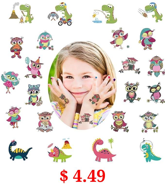 $ 4.49 Fanoshon Cute Owl Dinosaur Party Temporary Tattoos for Kids Boys Girls, Waterproof Fake Body Art Makeup Stickers for Children Birthday Festival Halloween Christmas Party Favors Supplies