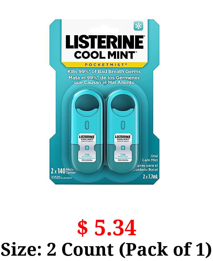 $ 5.34 Size: 2 Count (Pack of 1) Listerine Pocketmist Cool Mint Oral Care Mist to Get Rid of Bad Breath, 2 Pack