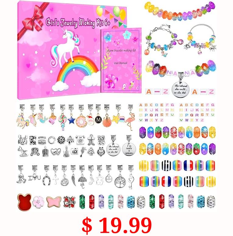 $ 19.99 Girls Charm Bracelet Making Kit - Birthday Gifts for Age 5 6 7 8 9 10 11 12 Year Old Girl Children 166 Pcs Kids Creative Toys Make Jewelry Supplies Set Unicorn Charms Bracelets Kits DIY Art Craft Set