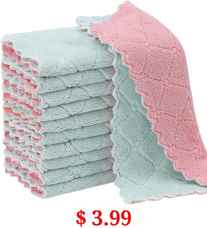 $ 3.99 11Pack Kitchen Dish Cloths, Reusable Dish Towels, Nonstick Oil Washable Fast Drying, Super Absorbent Coral Velvet Cleaning Cloths for Cleaning Tableware, Kitchen, Bathroom (Pink-green10 x 6")