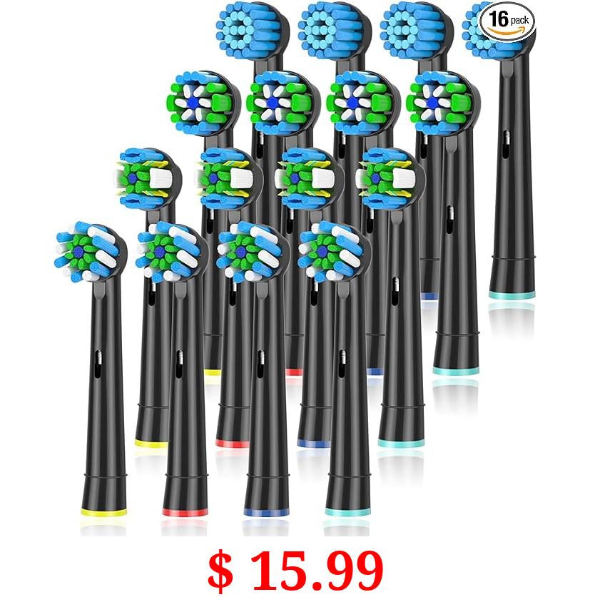 $ 15.99 Replacement Toothbrush Heads Compatible with Braun Oral b 7000/Pro 1000/9600/ 5000/3000/8000/Genius and Smart Electric Toothbrush, 16 Pcs (Black)
