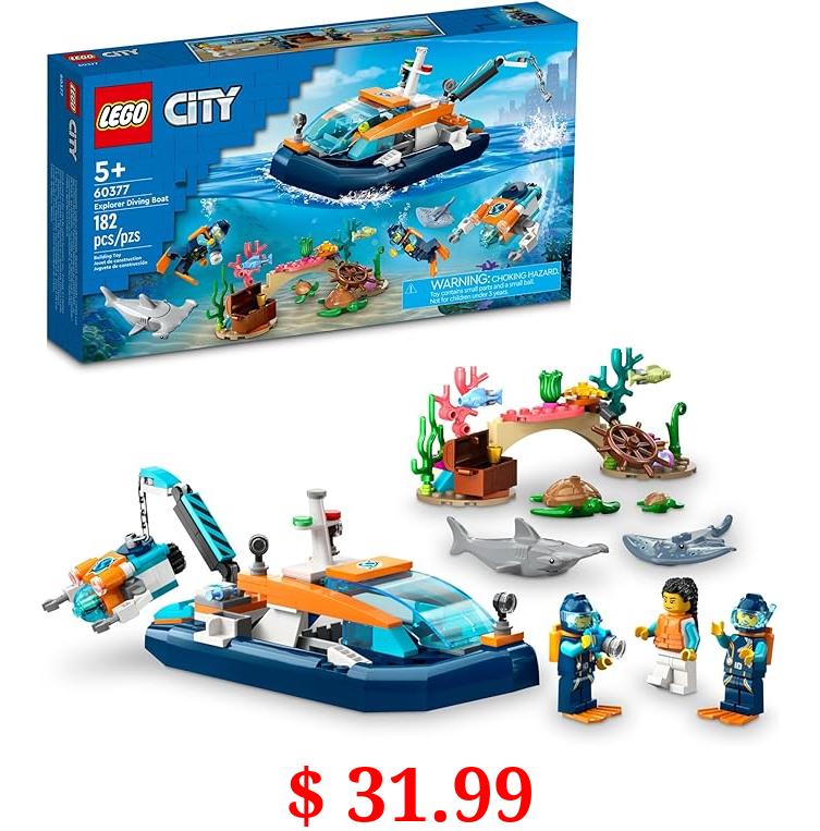 $ 31.99 LEGO City Explorer Diving Boat 60377 Ocean Building Toy, Includes a Coral Reef Setting, Mini-Submarine, 3 Minifigures and Manta Ray, Shark, Crab, 2 Fish and 2 Turtle Figures