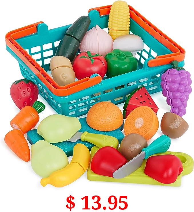 $ 13.95 Battat- Play Food Toys for Kids – Food Set with Cutting Boards and Accessories – Farmers Market Produce Basket- Toddler Pretend Fruit- Farmers Market Produce Basket- 2 Years +