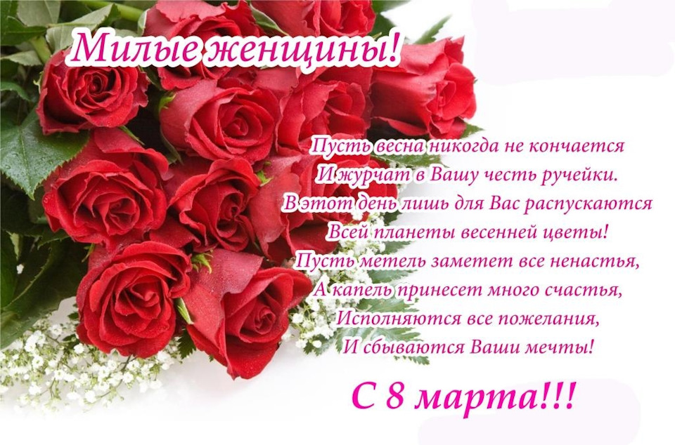 Поздравления с 8 марта (28 фото) Мужчины с наступлением весны превращаются в неисправимых романтиков, которые стремятся поздравить своих любимых женщин с их праздником — Днём 8 марта . Всё . . .