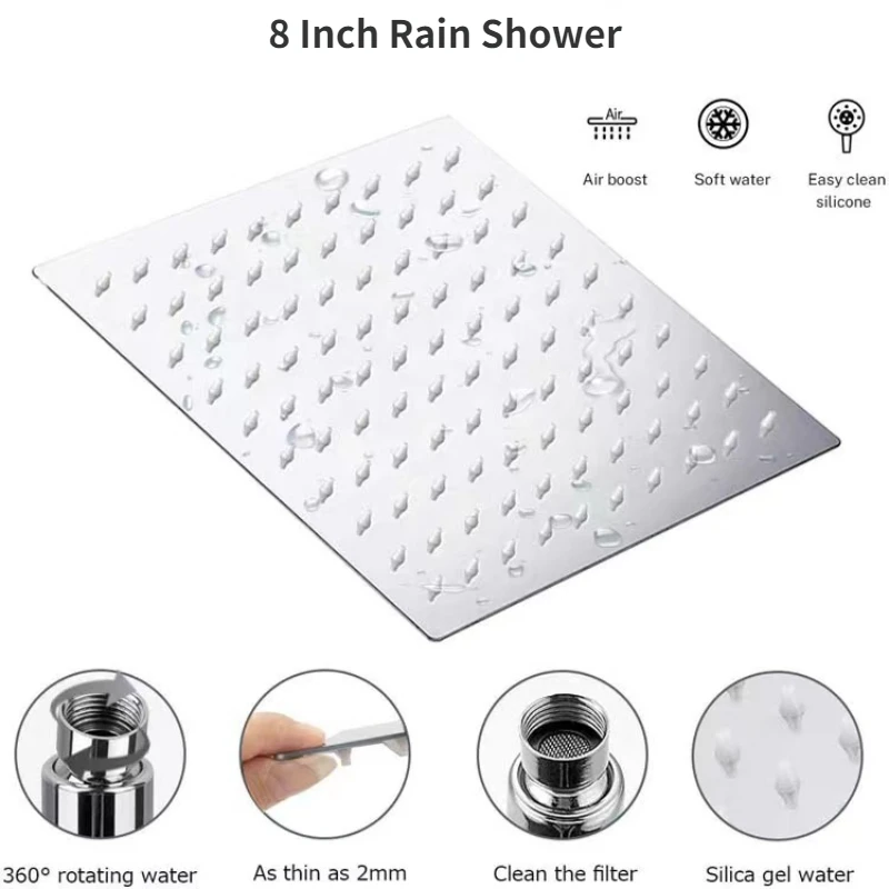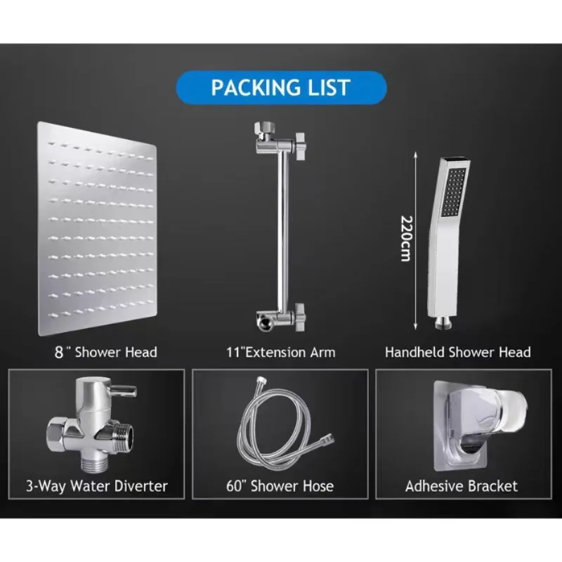 HkeufapPYmHere you can buy 8 Inch Rain Shower Set Stainless Steel Overhead Showers System Bathroom Shower Faucet with Hand Showerhead Adjustable Top Spray with free delivery to your post office.