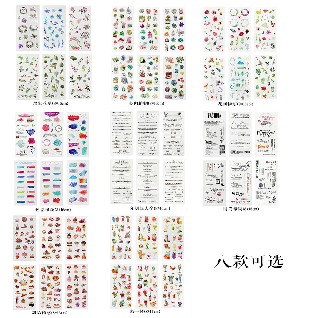 8 Styles Creative Beautiful Plants Dessert Splitting Line and Paper Sticker DIY Handbook Notebook Decorative Stationery Sticker - Купить с бесплатной доставкой