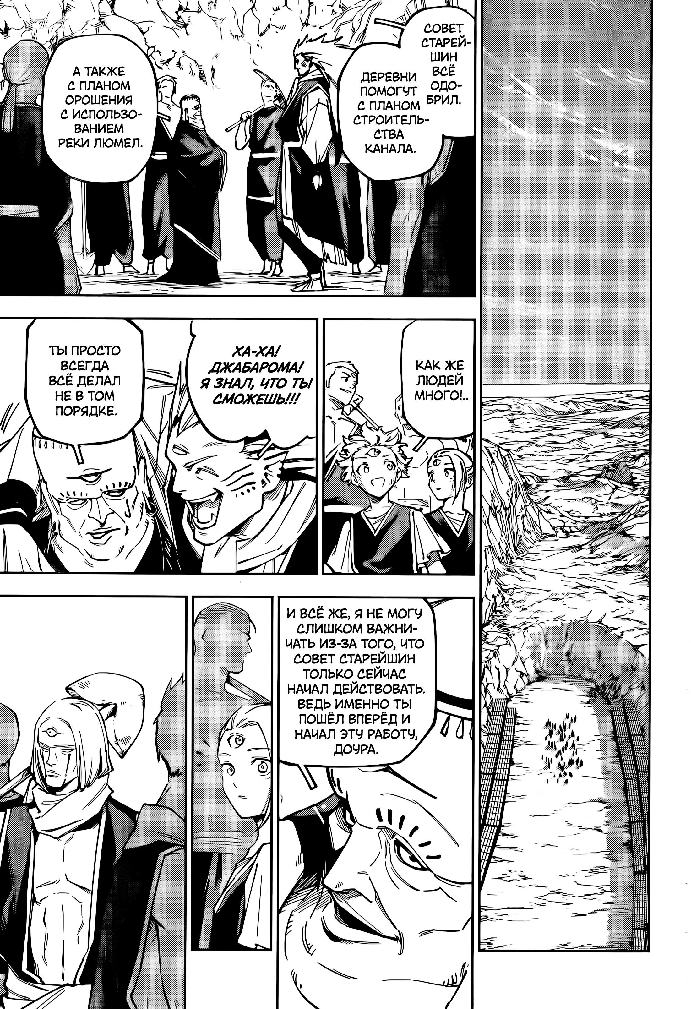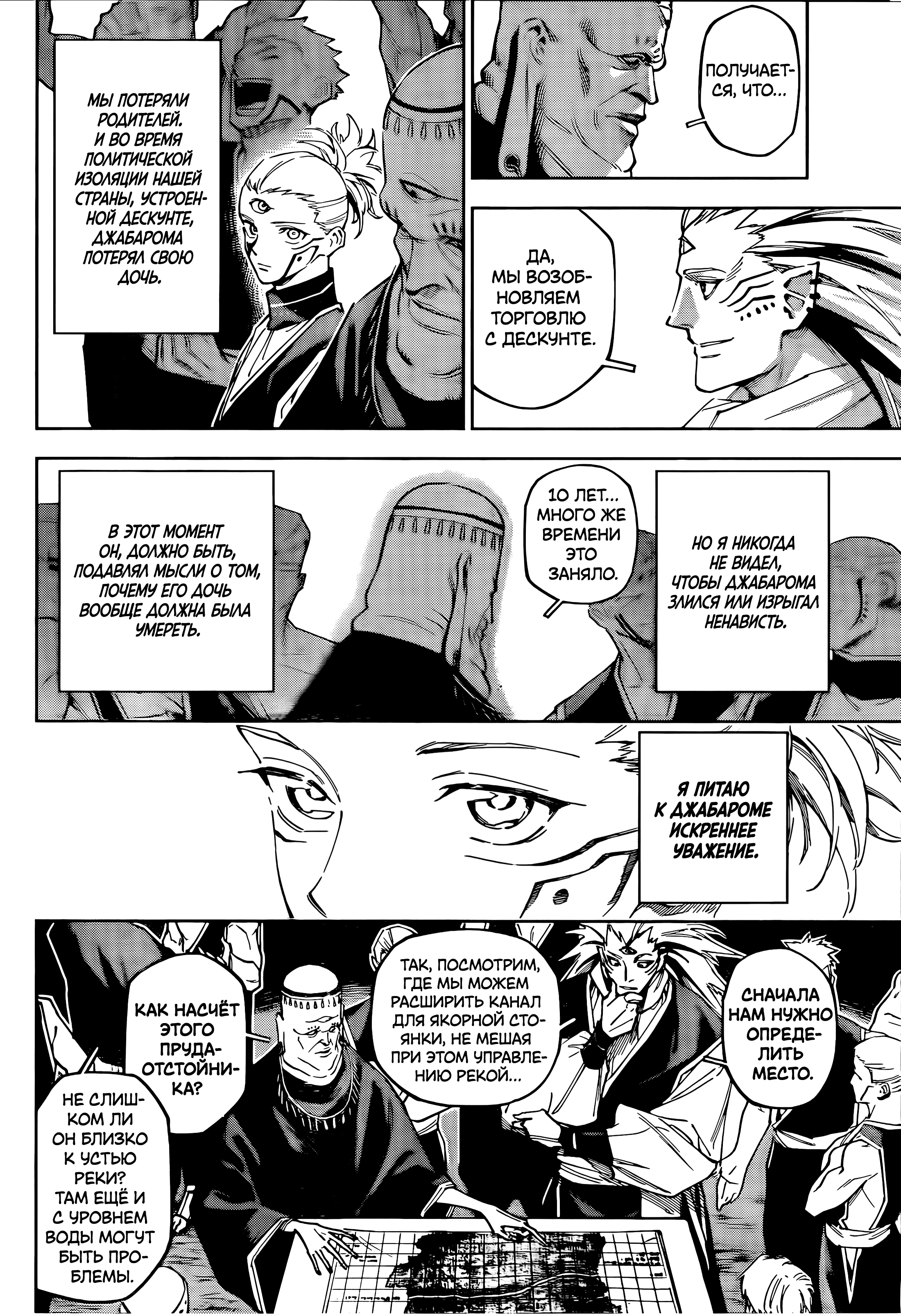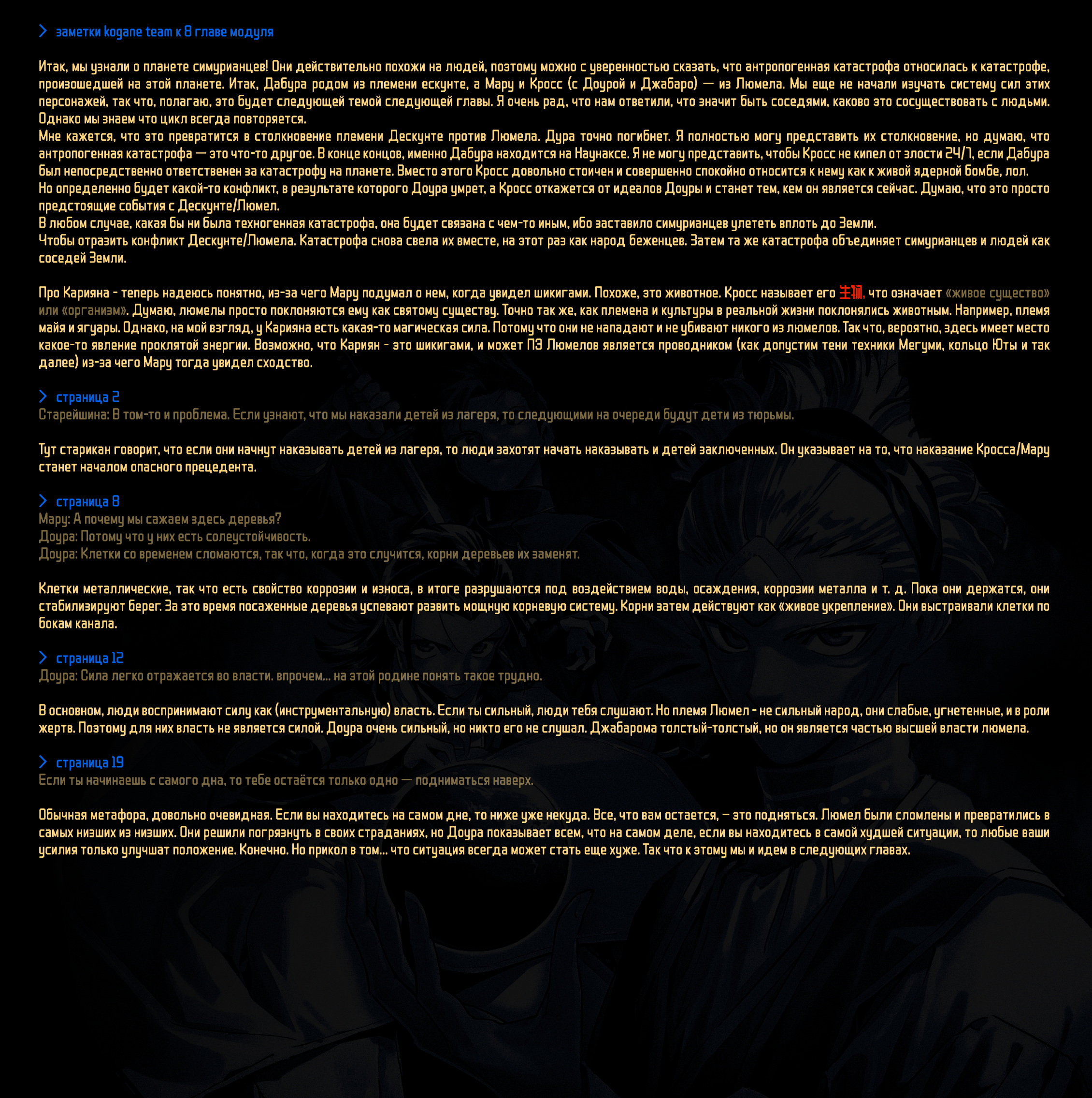Книга 天、共に在り Ten, tomo ni ari (Провидение было с нами) — это книга Накамуры Тэцу. Она посвящена работе доктора Сатоси Накамуры в Пакистане и Афганистане, где он оказывал медицинскую помощь местному населению. Думаю, это объясняет наличие кальянов в этой главе. Так что модуль был в его голове еще со времен жужуки. А значит, он не придумал историю с нуля после магички, а держал идеи о модуле до выхода самой манги.