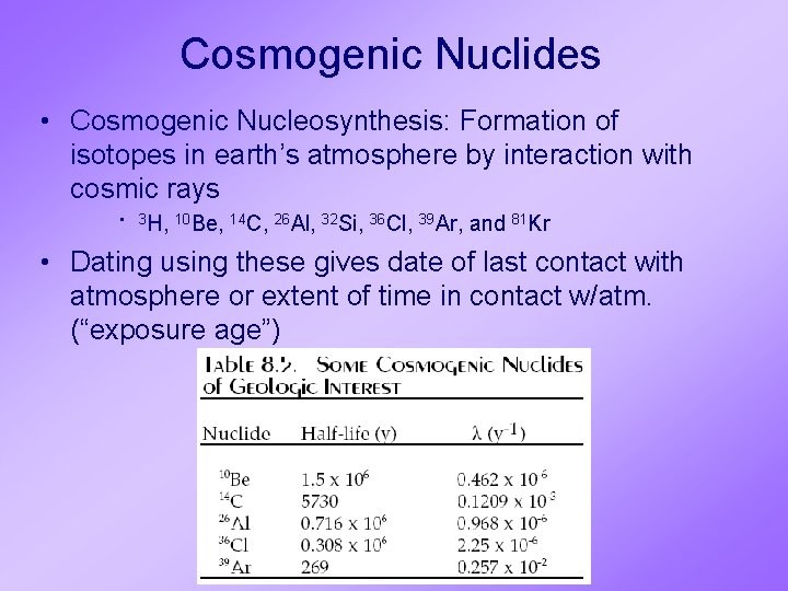 ^ 81Kr (230 kyr, isotopic abundance 5x10 -13 ) is a long-lived cosmogenic isotope, ideal for dating old groundwater and ice in the range of 50,000 years to a million years . Due to the extremely low isotopic abundance of ^ 81Kr ( Μ 1000 ^ 81Kr atoms are contained in 1 liter of modern ice or groundwater), analysis of ^ 81Kr at or below the atmospheric isotopic abundance has been an experimental . . .