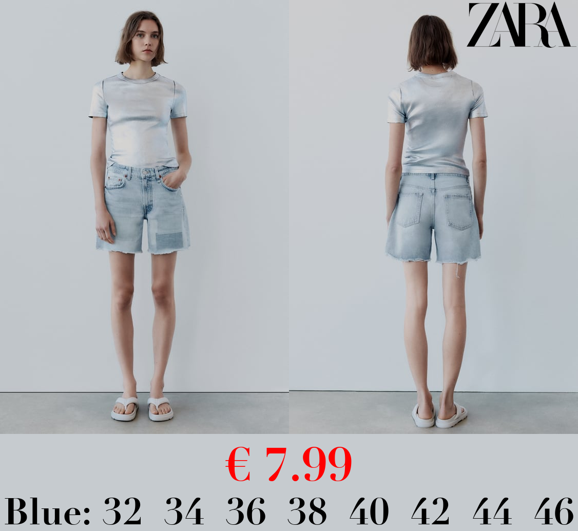 € 7.99 TRF MID-RISE DENIM BERMUDA SHORTS WITH PATCHES