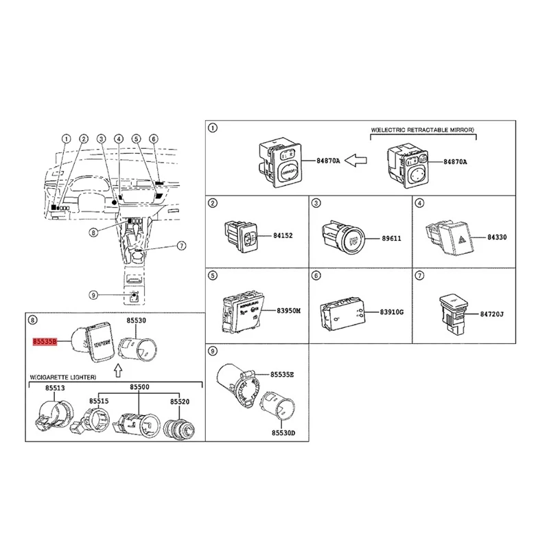 85535-50020 Rear Row Power Socket Cover For Toyota Lexus 4RUNNER Corolla Prado Alphard Cigarette Lighter Panel Plug Caps - Купить с бесплатной доставкой