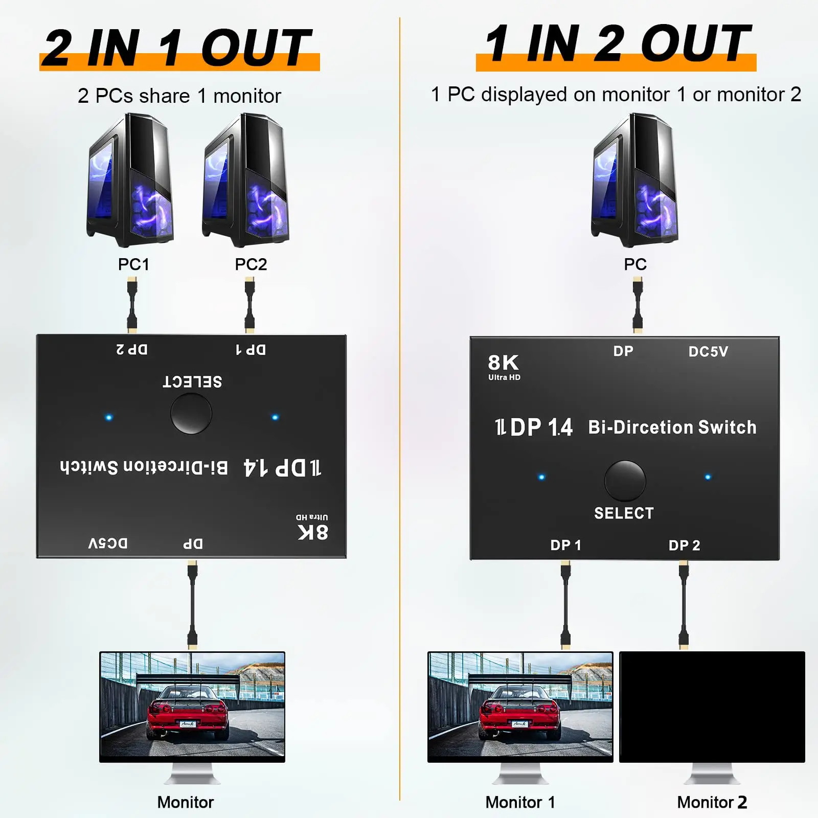RDTteMlOeHere you can buy 8K DisplayPort Switch Splitter,Bidirectional DP 1.4 Switcher 2 in 1 Out / 1 in 2 Out,Compatible with Video Sources and Displays with free delivery to your post office.