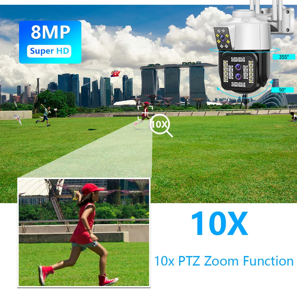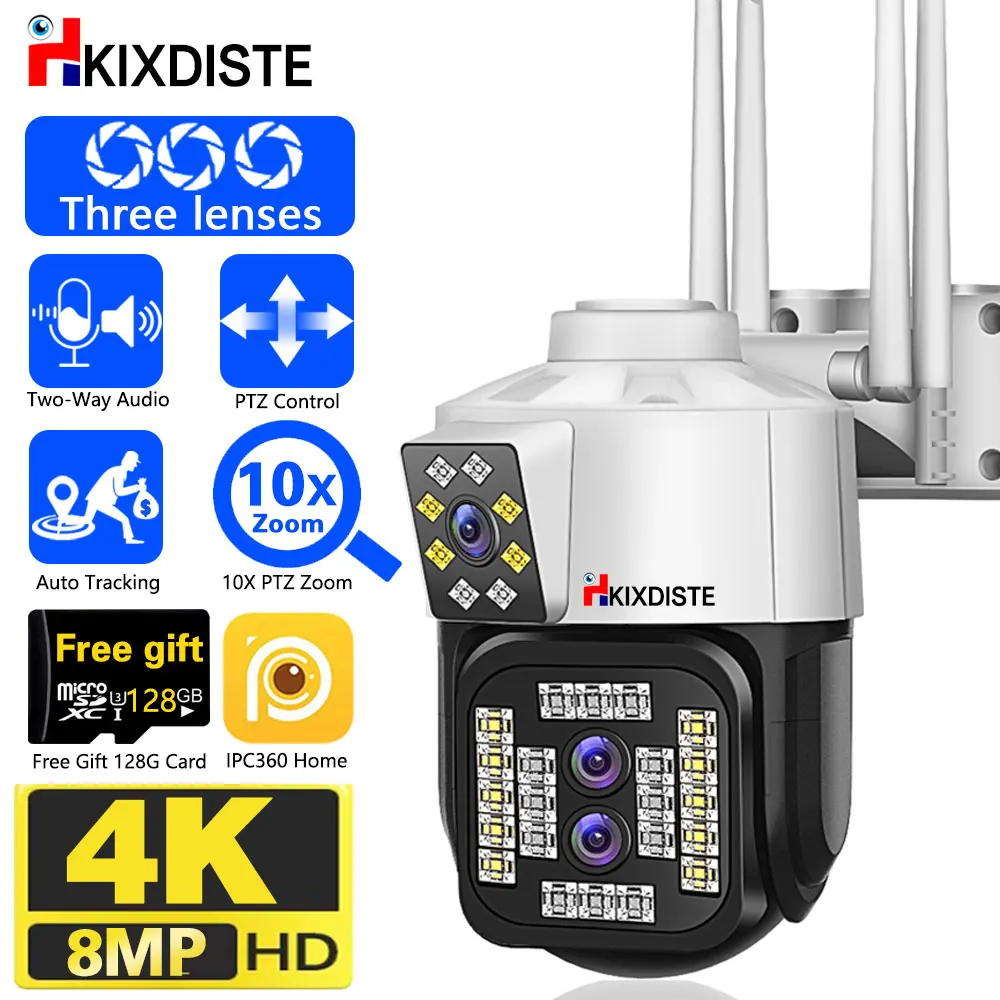 KhIcAoEUeHere you can buy 8MP 10X Zoom Three Lens Dual WiFi PTZ IP Camera Outdoor 4K Dual Screen AI Human Auto Tracking Security Video Surveillance Camera with free delivery to your post office.