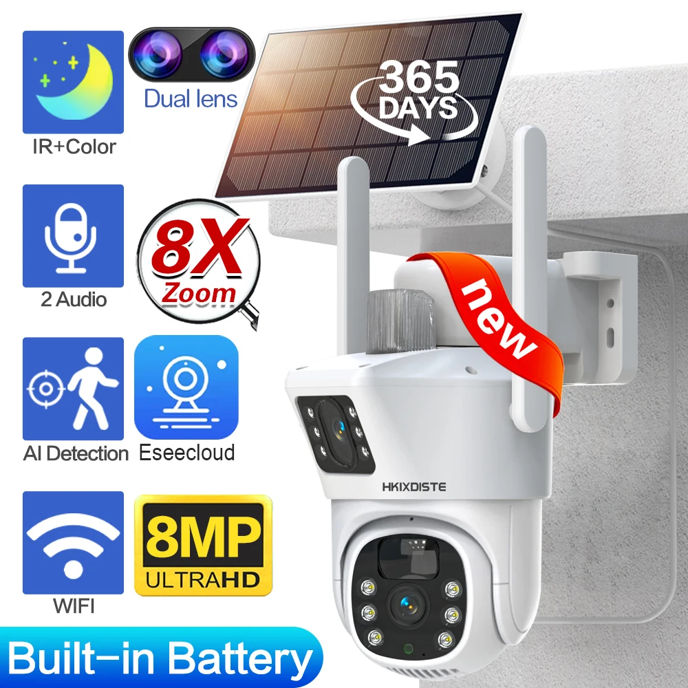 "8MP 4K Outdoor Wifi Dual Lens Camera Color Night Vision PTZ Wireless Solar Camera AI Auto Tracking CCTV Surveillance IP Camera" * Buy Now With Free Shipping Just For $71
