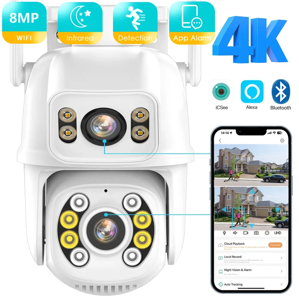 lCWYpWHsAHere you can buy 8MP 4K PTZ WiFi IP Camera Security Protection Dual Lens ScreenColor Night Vision4MP IP Camera CCTV Surveillance Camera ICSEE APP with free delivery to your post office.
