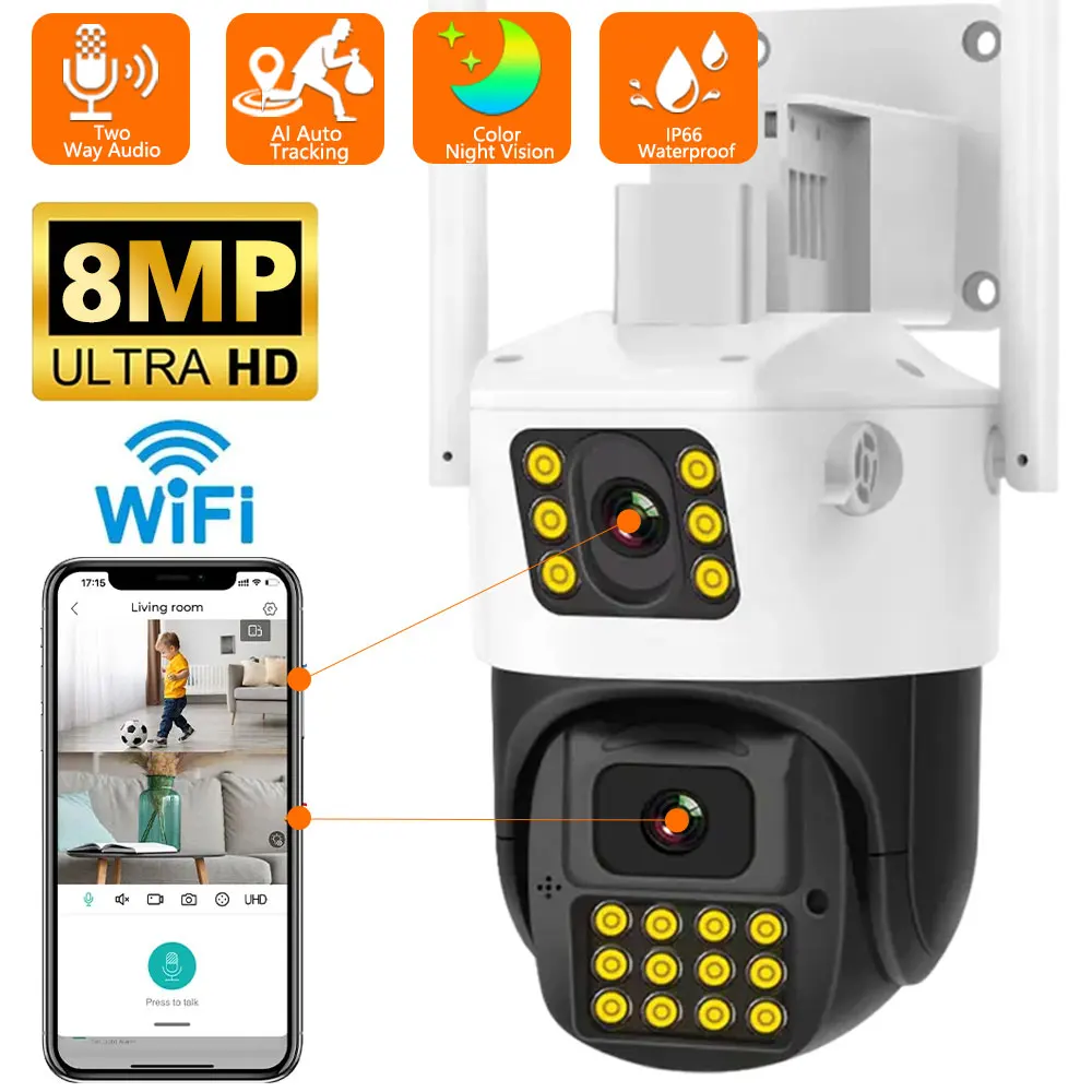 QvDZKnklcsHere you can buy 8MP 4K PTZ Wifi Camera Dual Lens with Dual Screen Ai Human Detect Auto Tracking Wireless Outdoor Surveillance Camera iCSee App with free delivery to your post office.