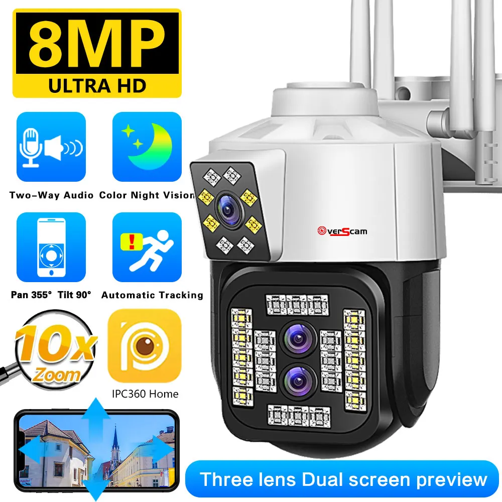 uYMjezaqЗдесь вы сможете купить 8MP 4K WiFi Camera Three Lens Security Waterproof 10X Optical Zoom Video Surveillance Auto Tracking Color Night Vision 360°Cccam с бесплатной доставкой до вашего почтового отделения.