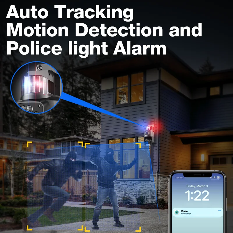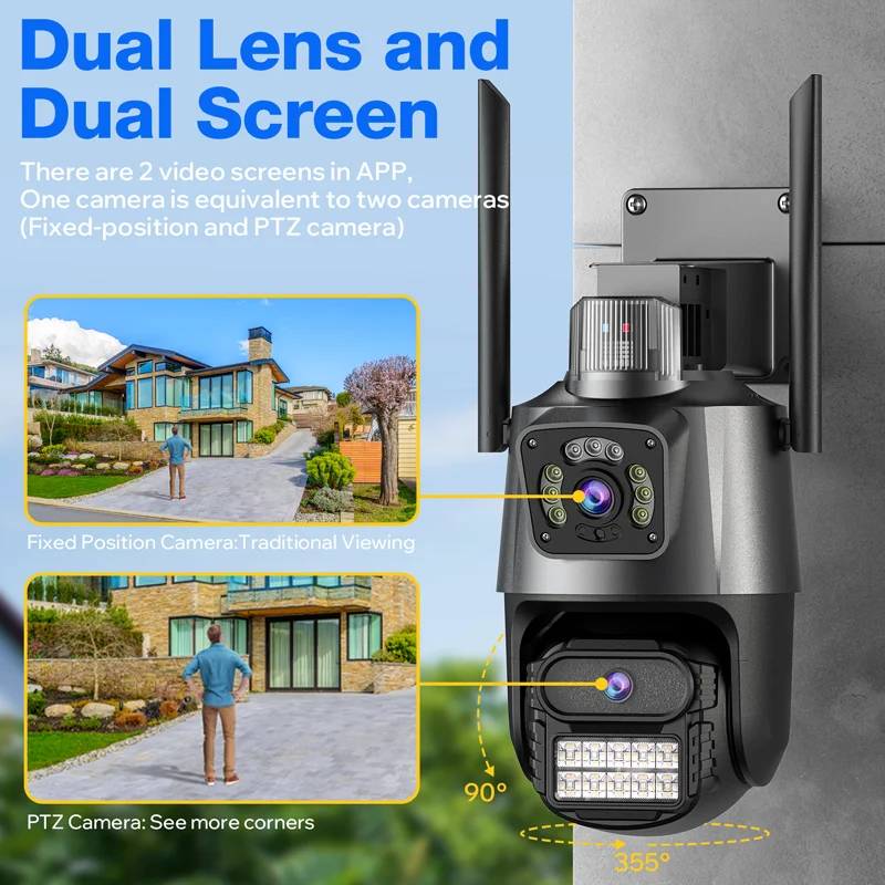 8MP Wifi Camera PTZ Outdoor Dual Lens Auto Tracking Alert Detect Smart Home Video Security Surveillance Camera Protection iCSee - Купить с бесплатной доставкой