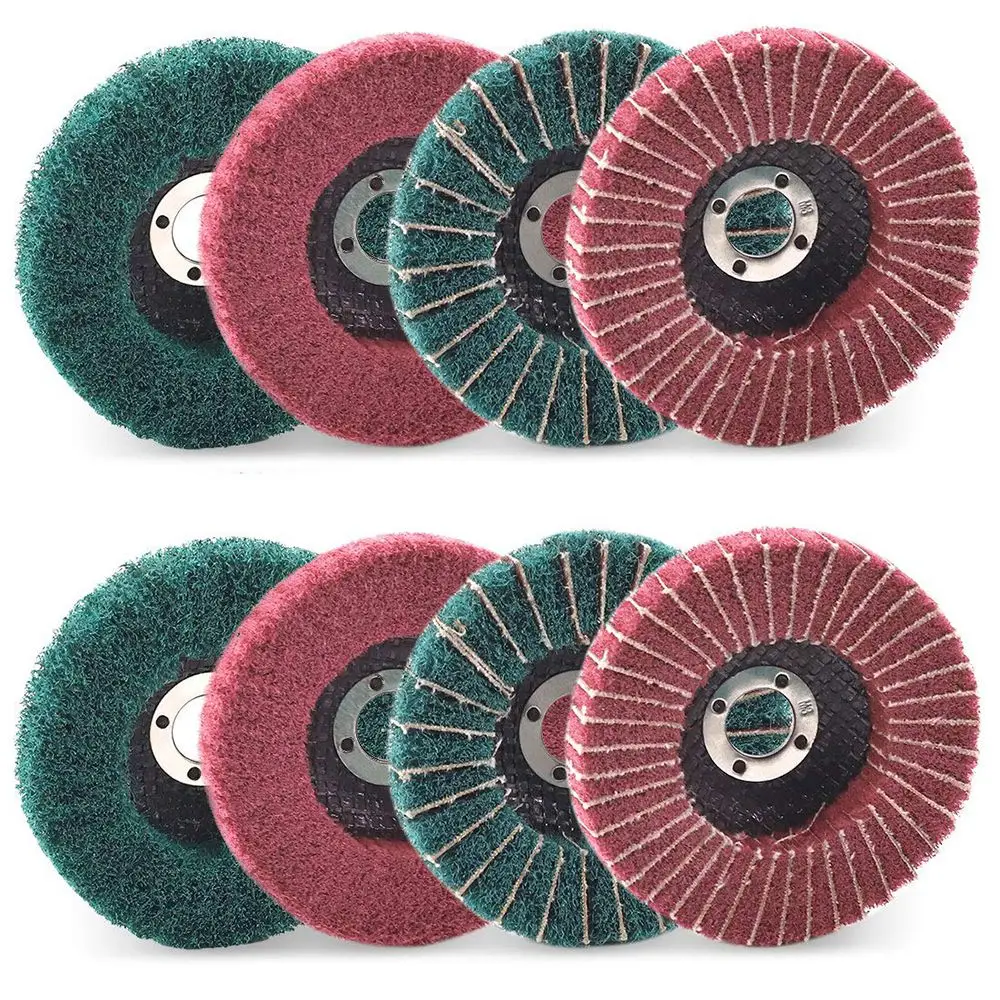 VmpZBPILcLHere you can buy 8PCS 4 Inch Red & Green Nylon Fiber Flap Discs Set Assorted Sanding Grinding Buffing Wheels for Angle Grinder with free delivery to your post office.