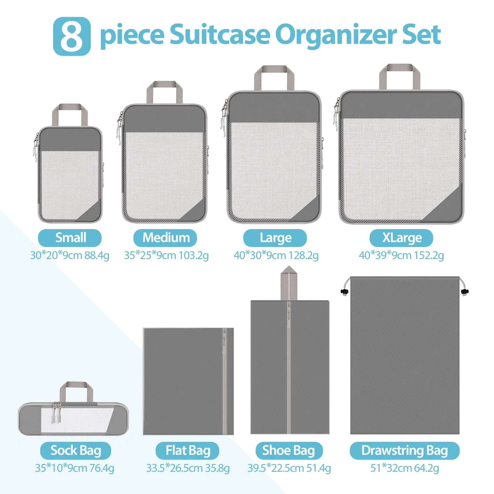 "8PCS Compressed Packing Cubes Travel Storage Organizer Set With Shoe Bag Portable Lightweight Suitcase Bag Mesh Visual Luggage" * Buy Now With Free Shipping Just For $34