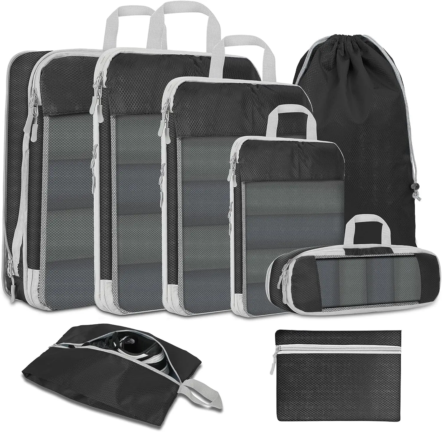 pFigqNSGaHere you can buy 8PCS Compressed Packing Cubes Travel Storage Organizer Set With Shoe Bag Portable Lightweight Suitcase Bag Mesh Visual Luggage with free delivery to your post office.