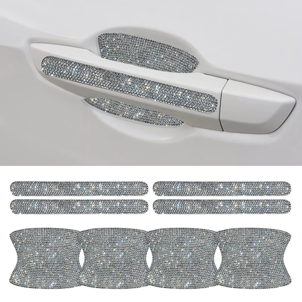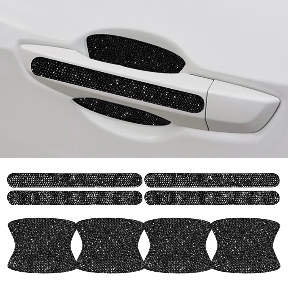 8Pcs/Set Car Door Sticker Shiny Rhinestones Scratches Resistant Cover Auto Handle Protection Film Exterior Styling Accessories - Купить с бесплатной доставкой