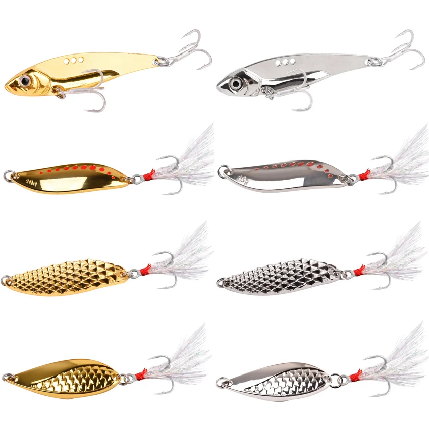 "8Pcs/lot Fishing Metal Spoon Lure Kit Set Gold Silver Baits Multiple Sequins Spinner Lures Feather Treble Hooks Fishing Tackle" * Buy Now Just For 5$