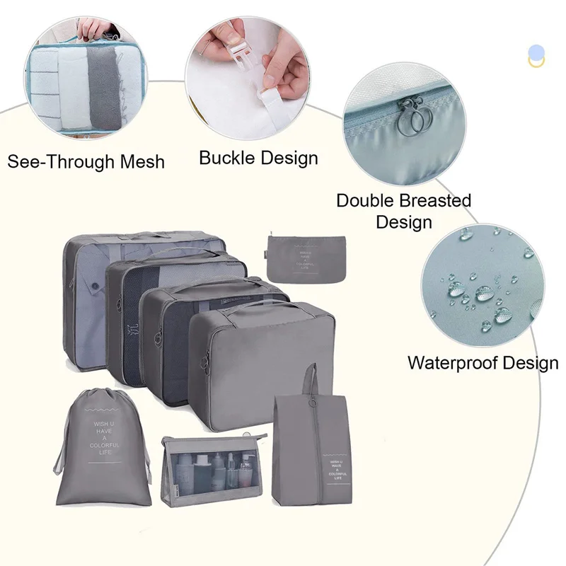 8pcs Travel Storage Bag Large Capacity Suitcase Storage Luggage Clothes Sorting Organizer Set Pouch Case Shoes Packing Cube - Купить с бесплатной доставкой