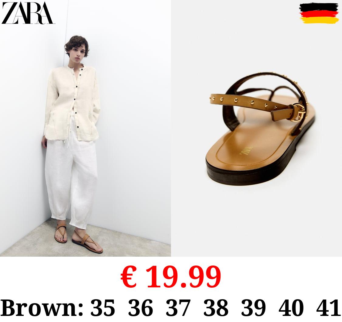€ 19.99 FLAT LEATHER SLIDER SANDALS WITH STUDS