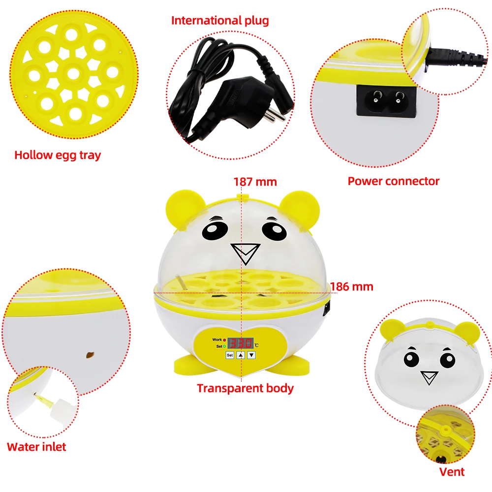 NudcHuYhWHere you can buy 9 Eggs Incubator Intelligent Breeding Professional Brooder Birds Automatic Thermostat Breeding Digital Display Hatching Tool with free delivery to your post office.
