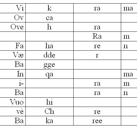 English: Ram, Welsh: Faharen, Danish: Vædder, Swedish: Bage, Zulu: Inqama, Khosa: i-ram, Russian: Baran