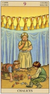 9 Кубков Таро (Девятка Чаш) значение, описание, совет и предостережение, трактовка в раскладах: в отношениях и любви, в работе, на здоровье, в ситуации . Сочетание с другими картами Таро .