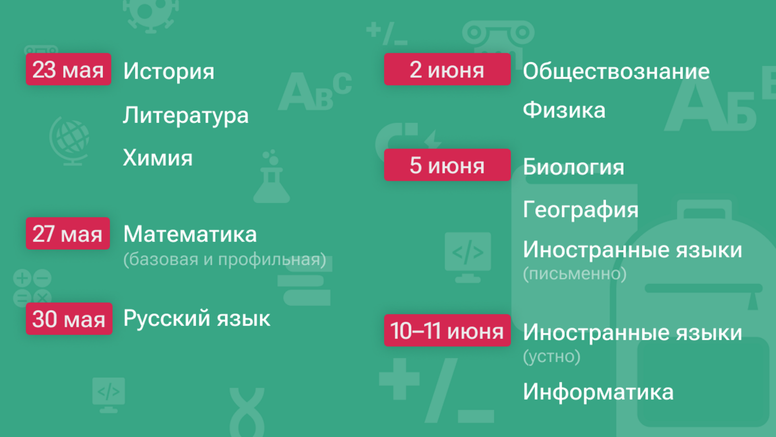 9 июня экзамен