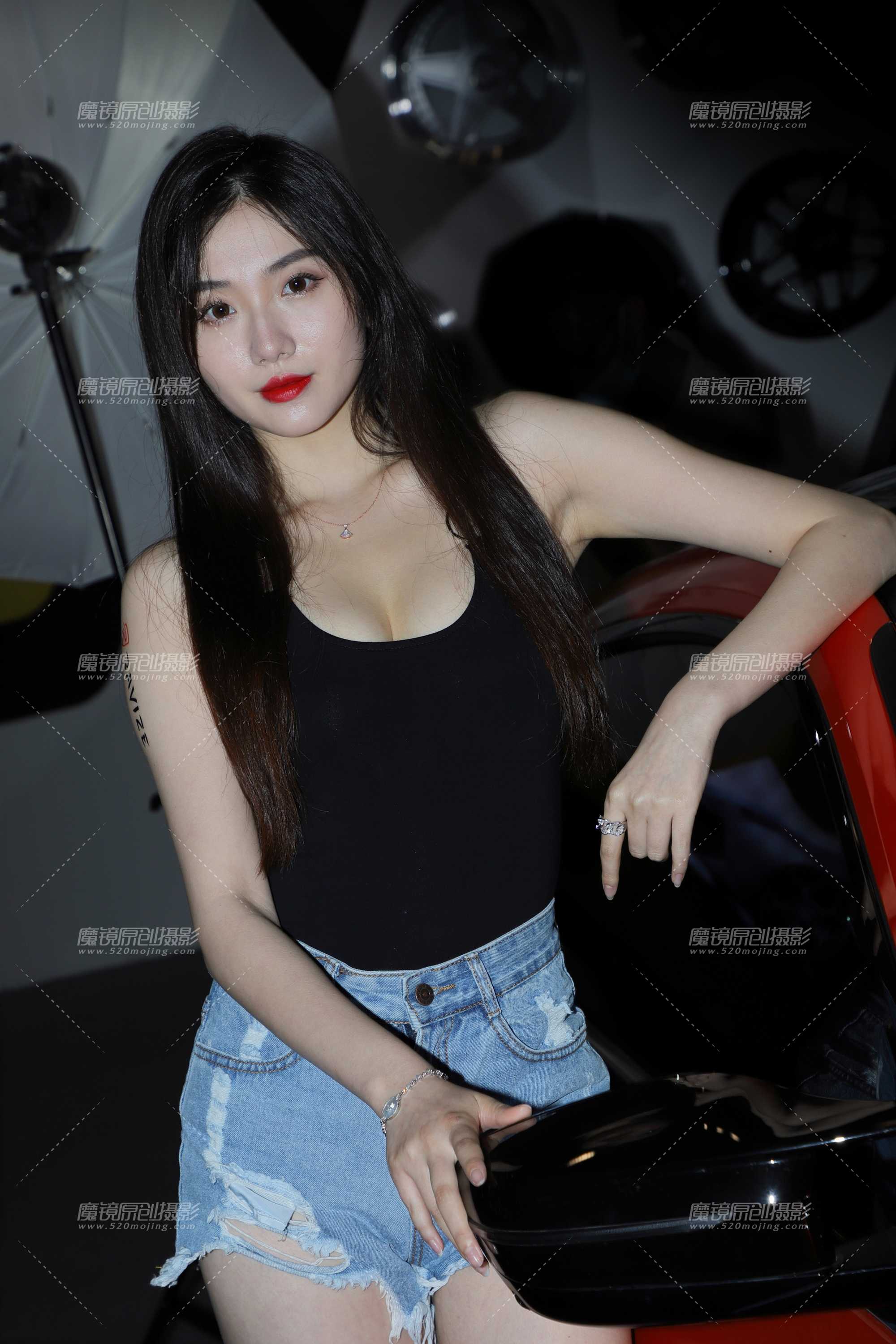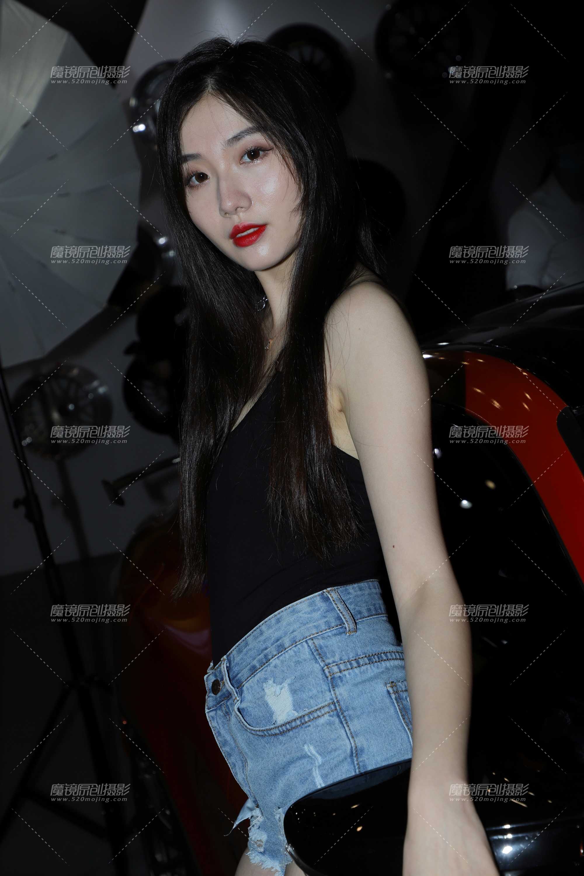 [44999]黑色小背心牛仔热裤3