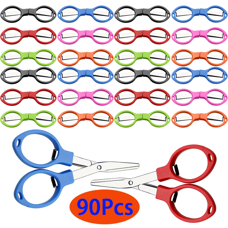 90Pcs Folding Scissors Mini Travel Scissors Stainless Steel Glasses Shape Rust-proof Sewing Scissors For Travel School Offices - Купить с бесплатной доставкой