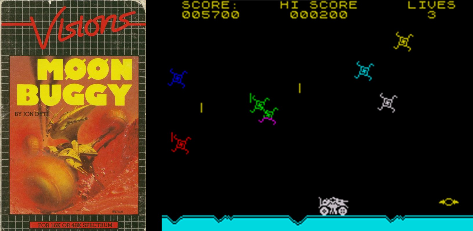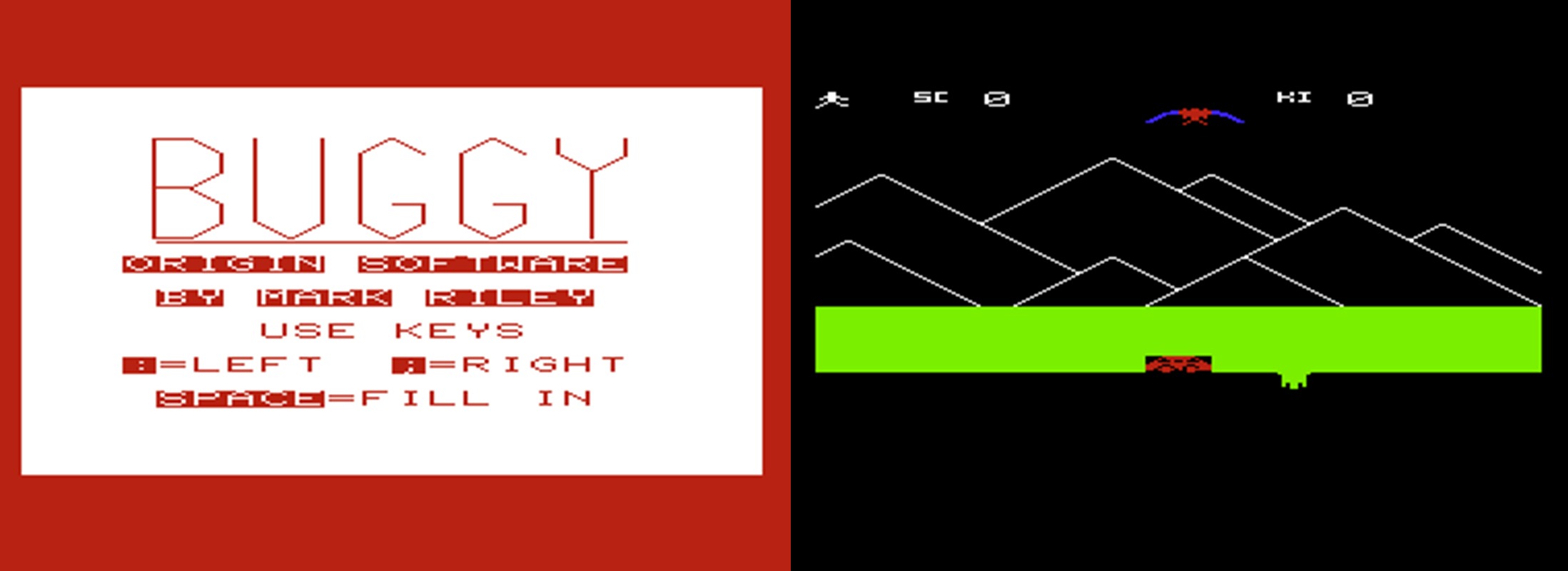 Buggy — игрок управляет небольшим транспортным средством, которое перемещается влево и вправо в нижней части экрана, и должен избегать огня с инопланетного корабля вверху. Когда игрок находится рядом с лунками, или если игрок переезжает лунку, он теряет жизнь. Потеряно три жизни, и игра окончена.