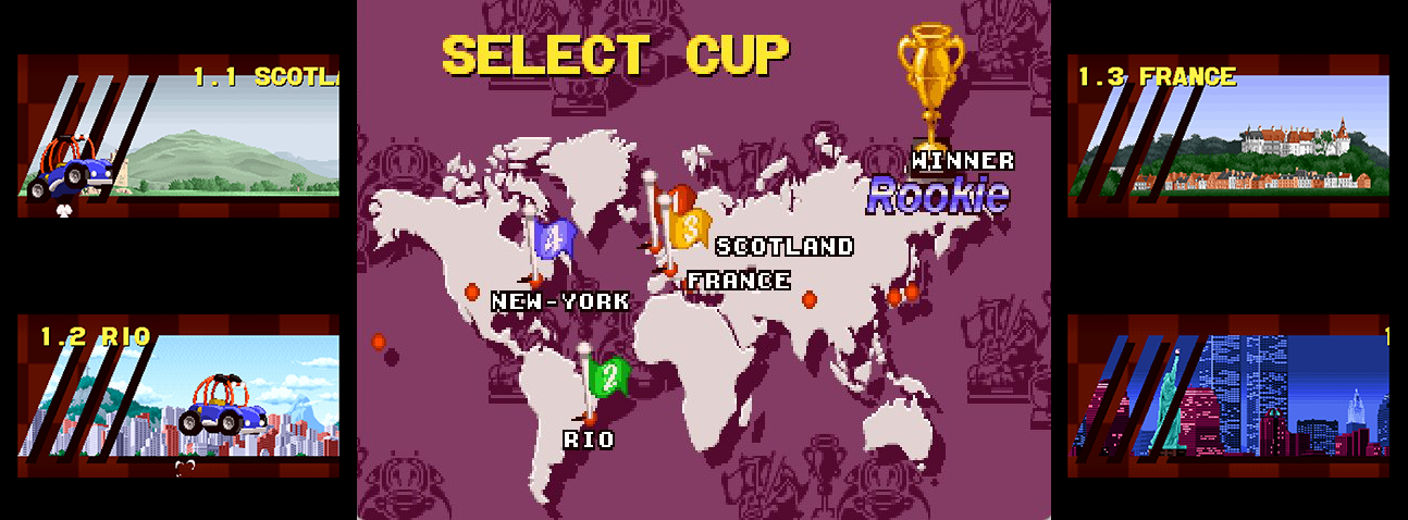 В игре 4 турнира по 4 трассы в каждом. При этом турнир PRO нельзя запустить пока не будут пройдены три предыдущие турнира.