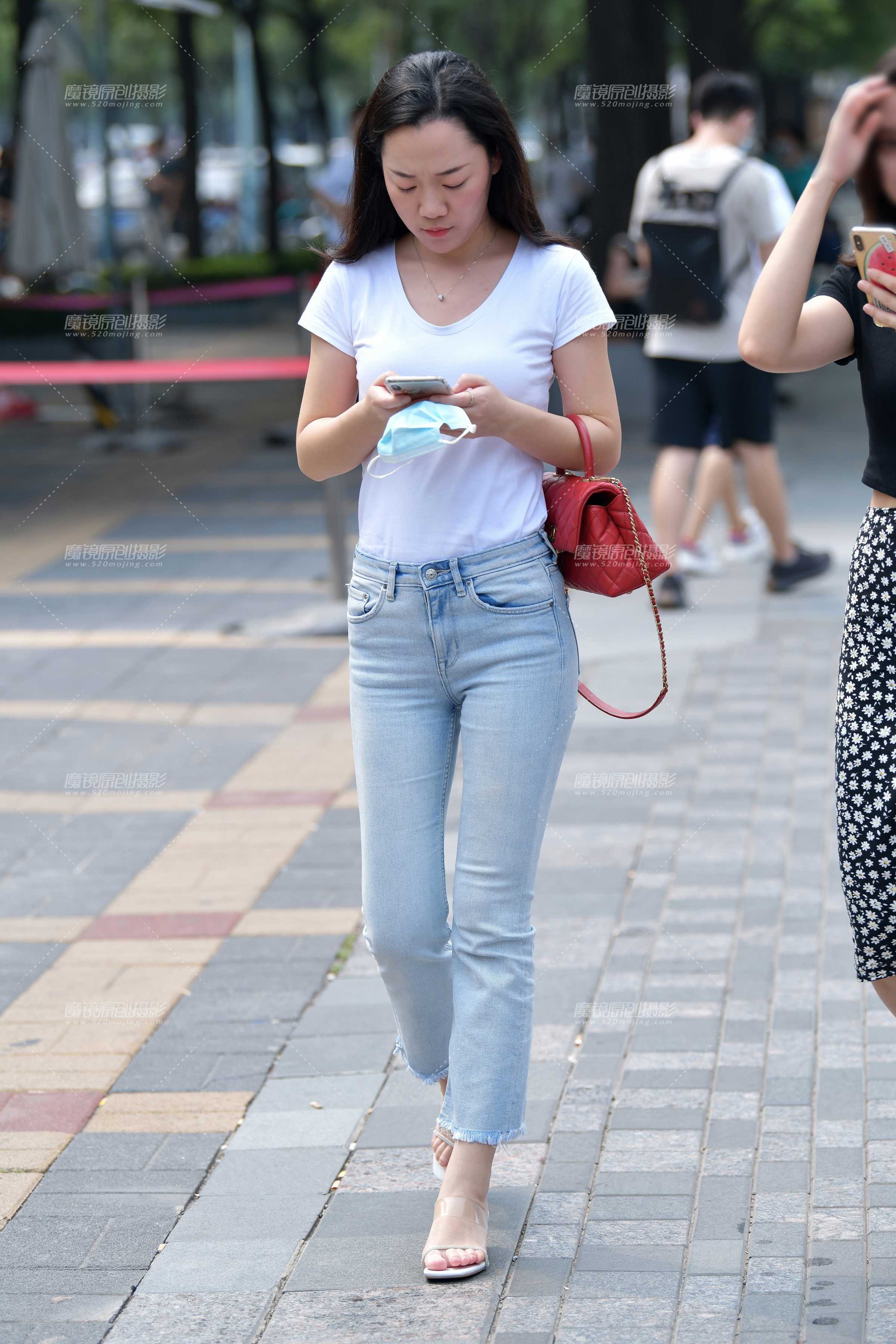 [47251]★看手机高挑牛仔裤美女