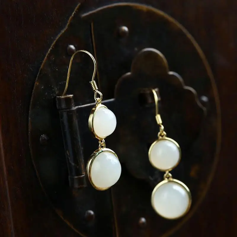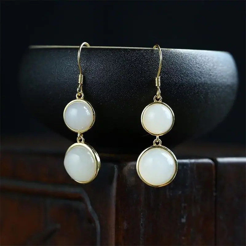 «925 Inlaid Natural Round Earrings Vintage Fairy Earrings Female Long Style Temperament Korean Fashion Aretes De Mujer vintage» по лучшей цене на рынке! Всего за 4$ (380рублей)