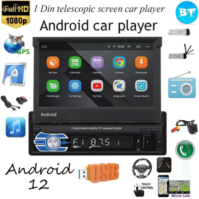 9706 Android 12 Car Radio 1 Din 7'' Touch Screen Car Multimedia Player GPS Navigation Wifi Auto MP5 BT USB FM RDS Rear View CAM - Купить с бесплатной доставкой